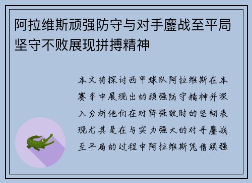 阿拉维斯顽强防守与对手鏖战至平局坚守不败展现拼搏精神