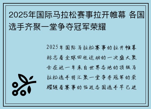 2025年国际马拉松赛事拉开帷幕 各国选手齐聚一堂争夺冠军荣耀